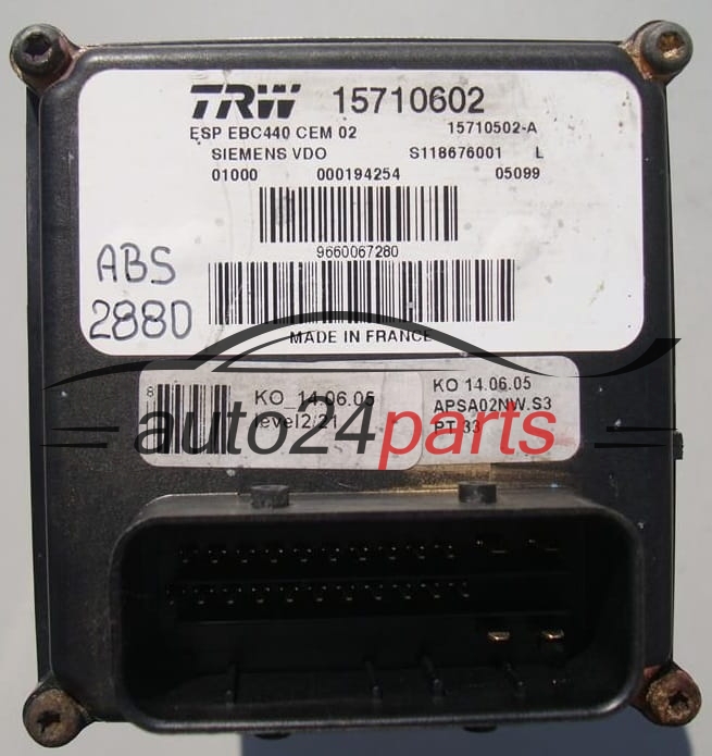 ABS POMPA I STEROWNIK PEUGEOT 407 TRW 15710602, 15710502-A, 15710502A, SIEMENS VDO S118676001 L, S118676001L -