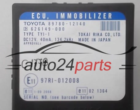 CENTRALKA MODUL STEROWNIK IMMO TOYOTA COROLLA 89780-12140, 8978012140, 97RI-012008, 97RI012008 -