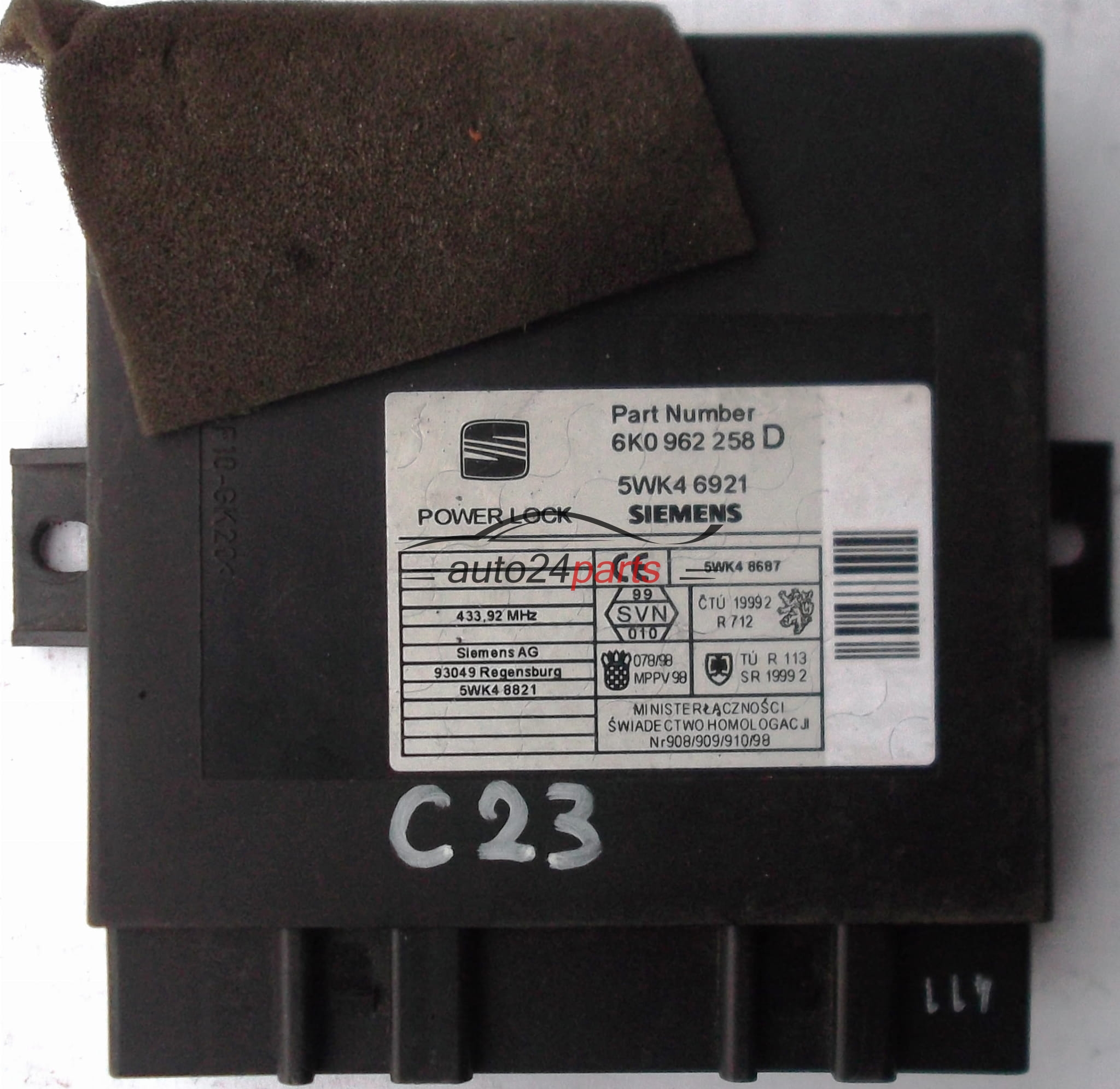 CENTRALKA MODUL STEROWNIK KOMFORTU 6K0962258D, 6K0 962 258 D, SIEMENS 5WK4 6921, 5WK46921, 5WK4 8821, 5WK48821 SEAT IBIZA CORDOBA - C554, C596, C23