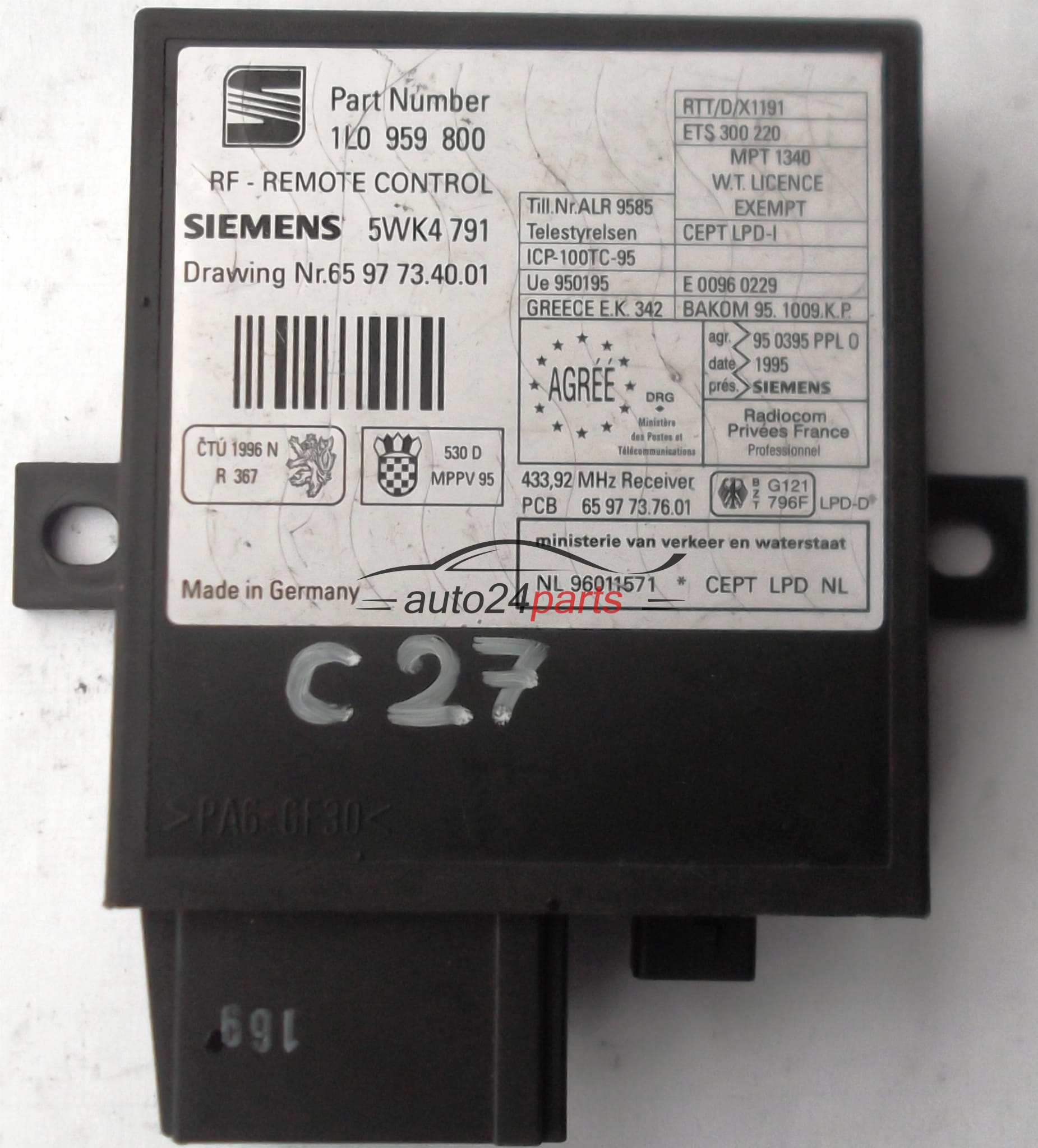 CENTRALKA MODUL STEROWNIK SEAT SIEMENS 5WK4791, 5WK4 791, 1L0959800, 1L0 959 800 - C27, C28, C391