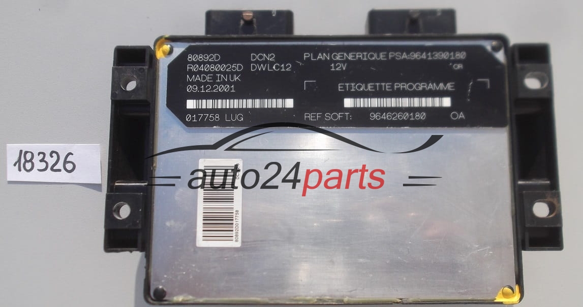 KOMPUTER STEROWNIK SILNIKA CITROEN PEUGEOT LUCAS R04080025D, PSA: 9641390180, SOFT: 9646260180, DCN2, DWLC12 - 18326, 18452, 396, 658