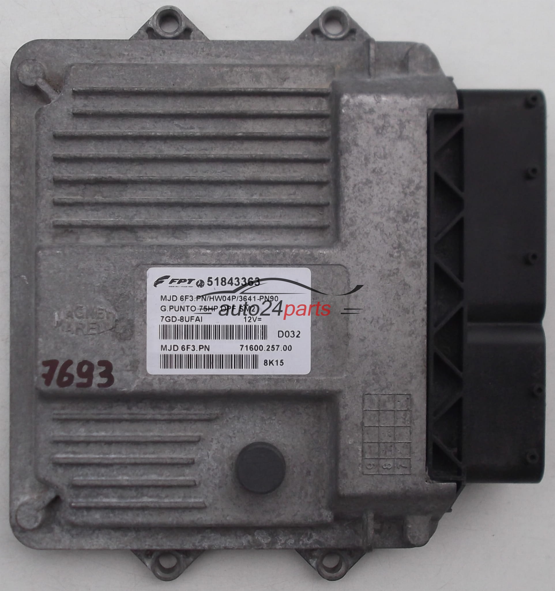 KOMPUTER STEROWNIK SILNIKA FIAT GRANDE PUNTO 1.3, 51843363, MJD 6F3.PN, MJD6F3PN, 71600.257.00, 7160025700, MJD 6F3.PN/HW04P/3641-PN90 - 7693