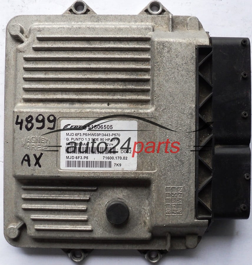 KOMPUTER STEROWNIK SILNIKA FIAT GRANDE PUNTO 1.3 MJET SDE 51806505, MJD6F3P5, MJD 6F3.P5/HW03P/3443-P570 7160017002, 71600.170.02 -
