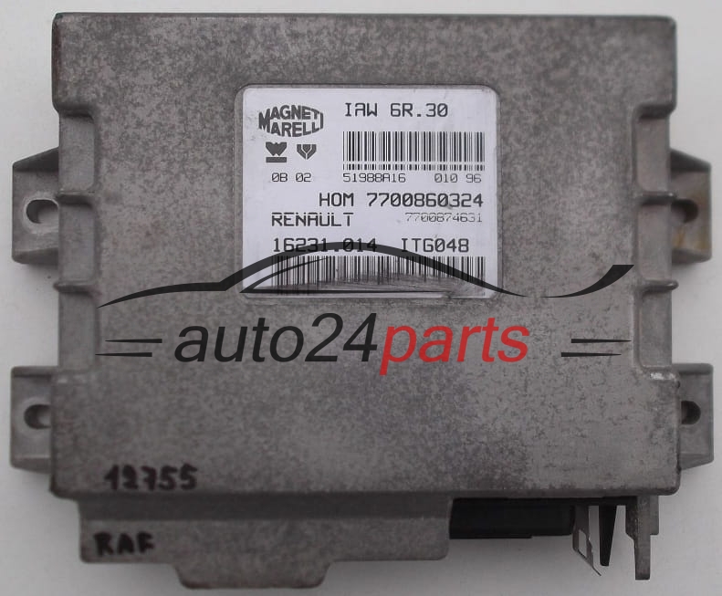 KOMPUTER STEROWNIK SILNIKA RENAULT TWINGO 1.2 MAGNETI MARELLI IAW 6R.30, IAW6R30, 7700860324, 7700874631, 16231.014, 16231014 - 12761, 14135, 14455, 14448, 14444, 14889, 15210, 15211, 15703
