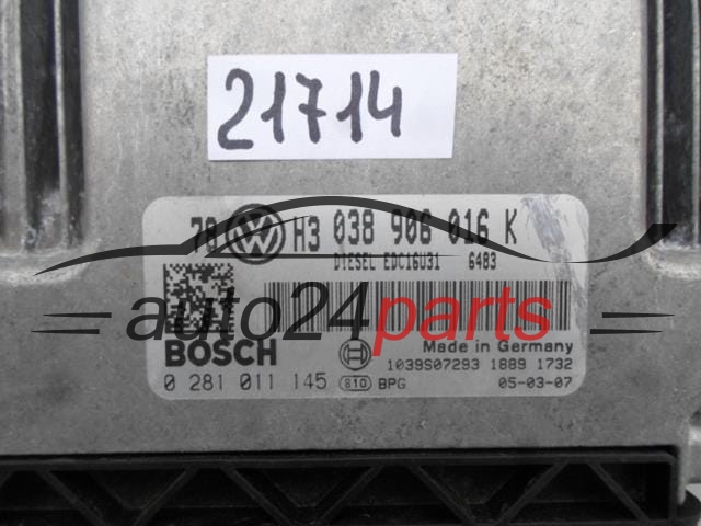 KOMPUTER STEROWNIK SILNIKA VW VOLKSWAGEN PASSAT BOSCH 0 281 011 145, 0281011145, 038 906 016K, 038906016K - 21714
