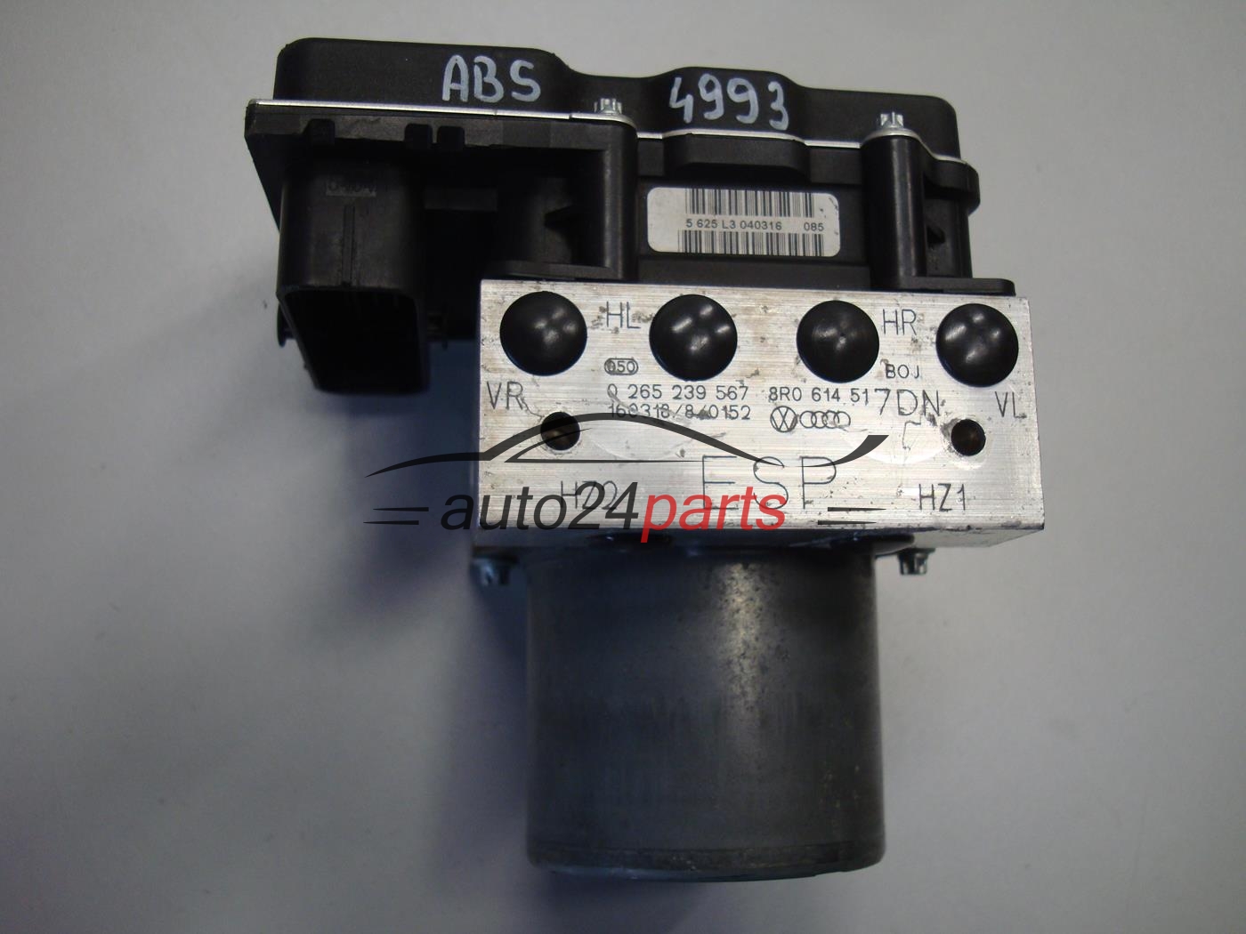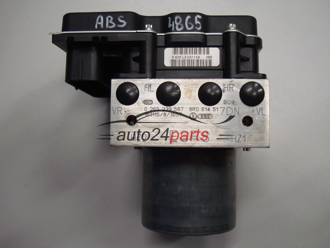 Numer 0265239567 odnosi się do hydraulicznej części pompy ABS produkowanej przez Bosch, natomiast 8R0614517DN jest numerem katalogowym stosowanym przez Audi. Oba oznaczenia mogą dotyczyć tego samego modułu ABS wraz ze sterownikiem 8R0907379BF i elektroniką 0265952301.